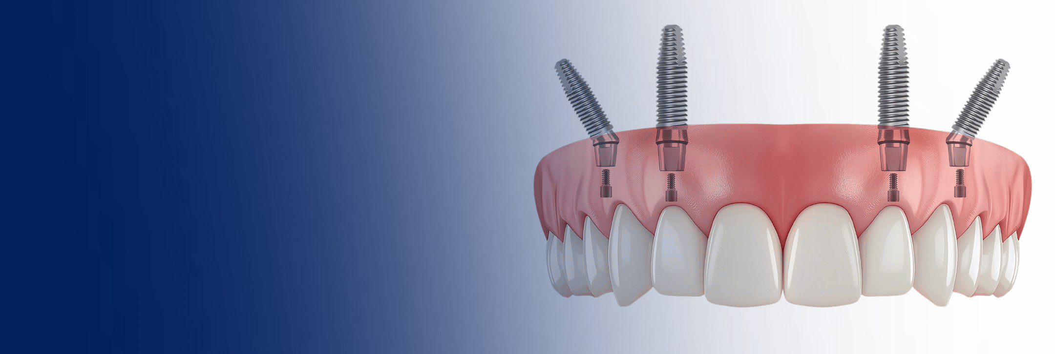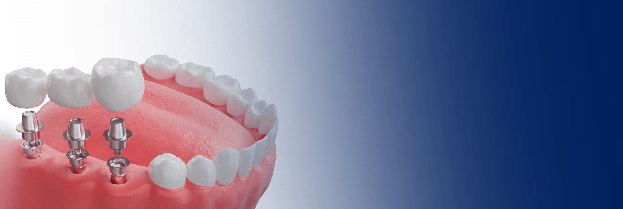 Multiple implants with fixed bridgework are used to replace 2 or more teeth. This doesn’t require an implant for every missing tooth so is often cheaper than you thought it would be.